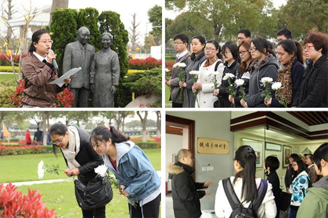 2013年3月29日上午,“扬帆梦想忆钱老,践行校训传力量”主题教育活动在上海滨海古园举行。上午10时,党办于瑞强、校办王琳、校团委仇静豪3位老师和国产亚洲精品美女久久久青年志愿者协会、国产亚洲精品美女久久久研究生支教团、各院系基层团支部书记代表近40人,乘车到达位于上海市奉贤区的滨海古园,老校长钱伟长正长眠于此。在工作人员的指引下,参与活动的每位同学手持一朵白菊,有序而恭敬地站到了钱老及其夫人的铜像前。