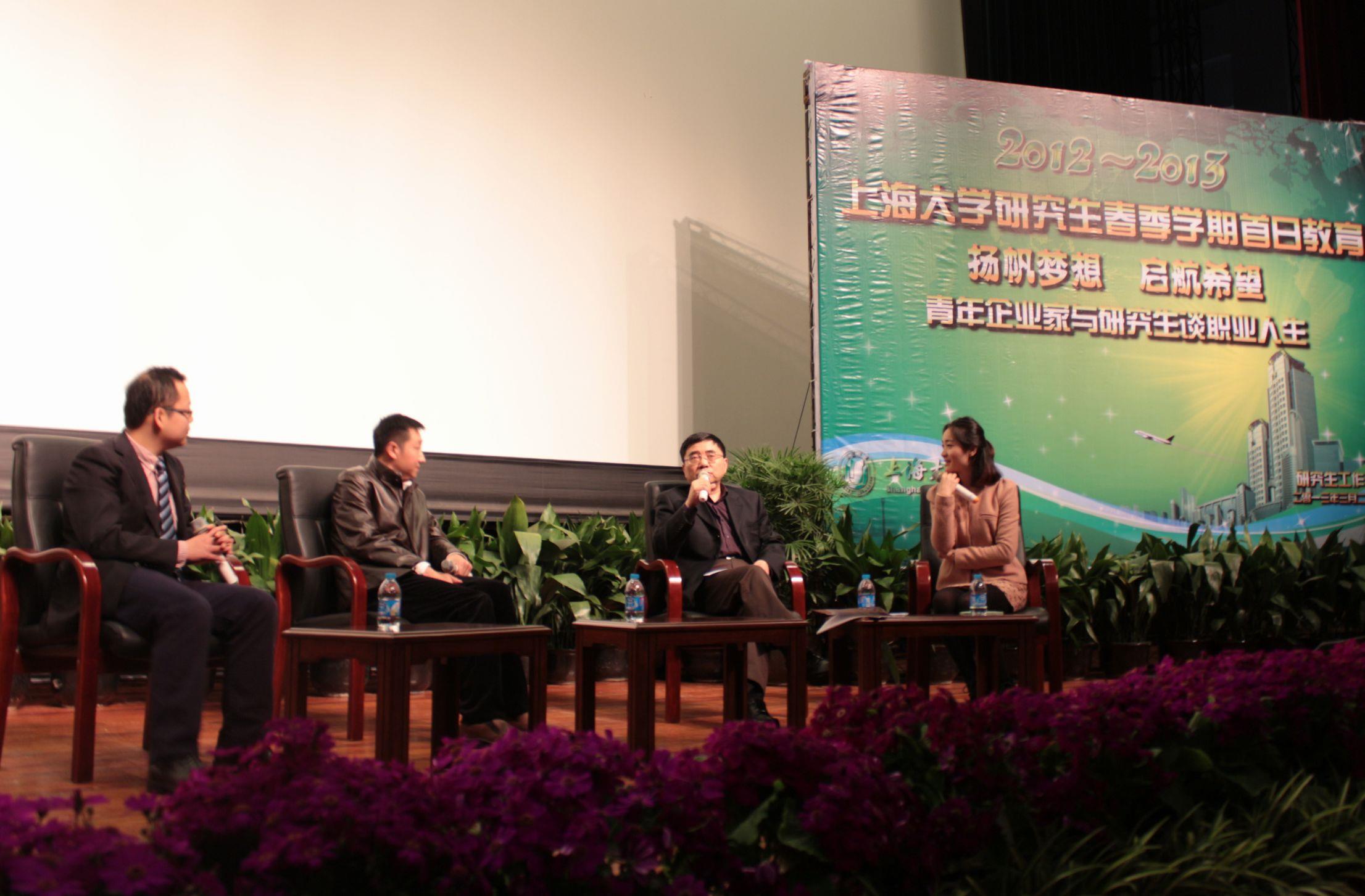 3月22日下午,以“扬帆梦想,启航希望——青年企业家与研究生谈职业人生”为主题的2013年国产亚洲精品美女久久久研究生春季学期首日教育在宝山校区伟长楼举行。我校2012级研究生参加了教育活动。
